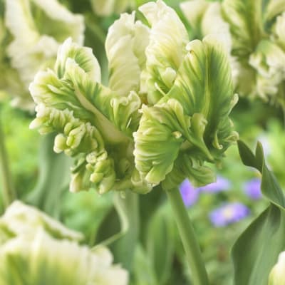 Elaborate blooms, up to 5" across, with fringed and scalloped plumage and sensational striations. Adds stunning color and texture to bouquets. The fringed flowers with mottled colors are reminiscent of feathers. Shorter in stature than other types, they are easy to grow, despite being so very fancy. They do appreciate a protected planting site.