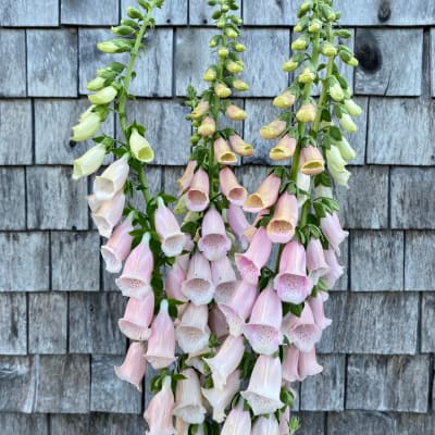Cerinthe major var. purpurescens Open pollinated. Annual. Features coin-shaped grey-green foliage and profuse blue shrimp-like bracts with purple flowers. Beloved by bumblebees. 12-30" tall.
