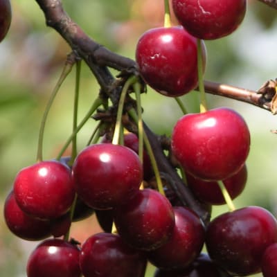 Prunus avium Summer. All-around excellent sweet cherry for the Northeast. Sweet light-colored flesh. Good size, great flavor and heavy cropping. Disease and crack resistant. Self-pollinating. Z4.