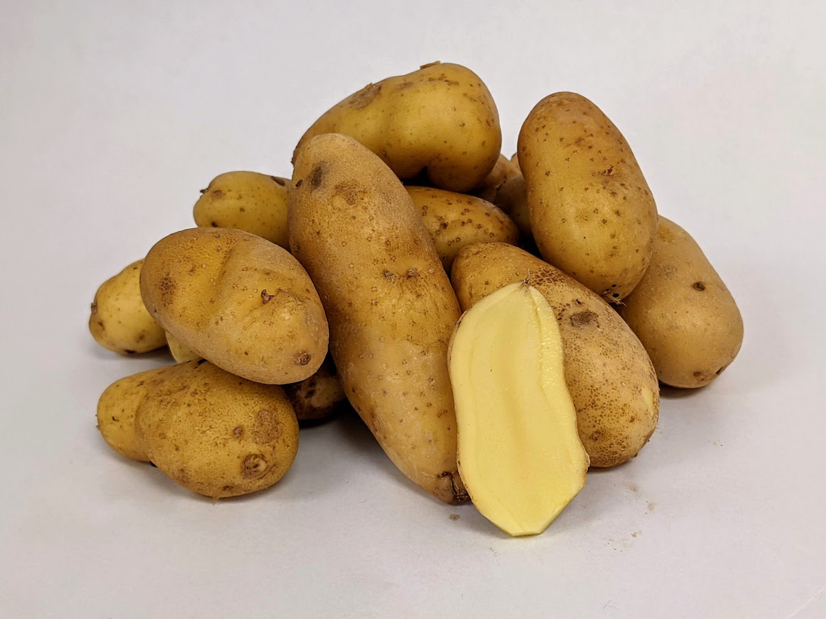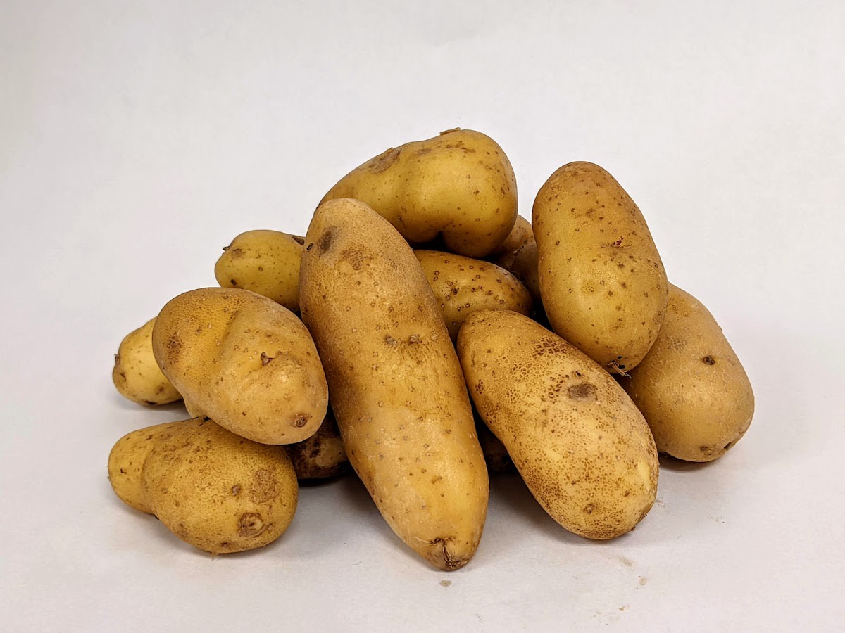Sometimes called Russian Banana. Nutty and waxy, Bananas are renowned for their heavy yields of banana-shaped fingers. Makes terrible smoothies, but you will spend nights dreaming of long strips of roasted Bananas, simmering in the crackles and pops of the lightest olive oil, with a slight crunch of sea salt and a dash of balsamic vinegar. Resistant to scab, but susceptible to late blight, leafroll and verticillium wilt.