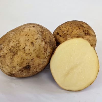 Solanum tuberosum Mid-season, buff skin, white flesh. Smooth glossy skin and uniform tuber shape and size. Starchy texture is ideal for baking, mashing, fries and homemade chips.