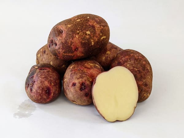 Vikings grow on the large knobby side, so if you want smaller, more uniform potatoes plant closer than 10" apart. Shows some resistance to leaf hoppers.