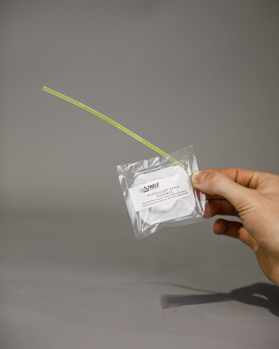 Apple essence lure for use with red ball traps. Works up to 12 weeks to attract apple maggot flies. National List