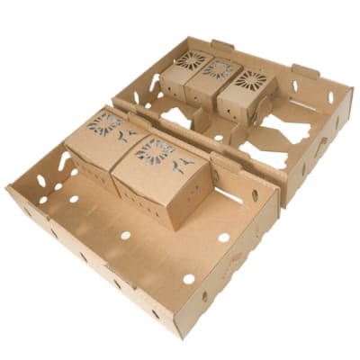 An environmentally friendly alternative to plastic clamshells, these boxes are recyclable and compostable cardboard and they ship flat, so they are more fuel-efficient to move around.