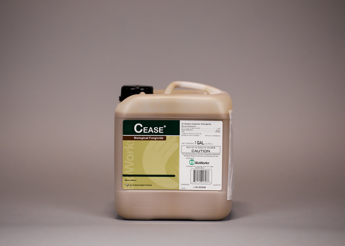 Why, oh why do we have so much trouble keeping Bacillus subtilis products on the shelf? We had to nix Serenade because we don’t want to give money to Bayer; Companion was great but then the manufacturer went into some endless relabeling process and we haven’t been able to get it. Cease has the same great active ingredient (in this case the QST 310 strain) but packaged as an aqueous suspension. A broad-spectrum preventative product for the control or suppression of many important plant diseases. May be used as a foliar spray or as a drench at 1 gal/100 gal water/acre. Please see pesticide label here. EPA Reg. 264-1155-68539.