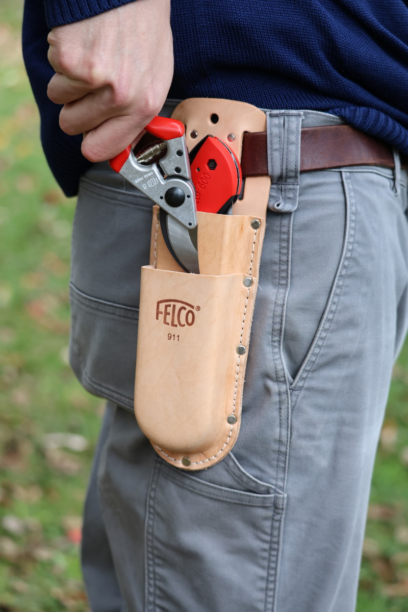 Pruning work involves constantly grabbing for and replacing pointy tools; this holster keeps tools within reach and protects you and your clothes. Features two attachment mechanisms, so it can secure to a belt, waistband or pocket. You’ll look and feel like a pro.
