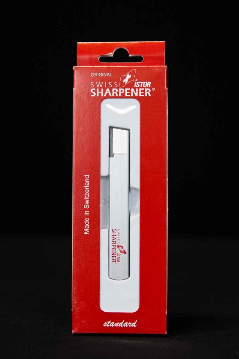 Composite steel blade with two precision edges. Suitable for righties or lefties. Depending on the angle of the bevel from the manufacturer, hold the sharpener at a 20–40° angle to your knife or scissor blade with the blade tip pointing away from you, and slide the sharpener along the length of the blade with light pressure, for 5-10 strokes. That’s all it takes.
