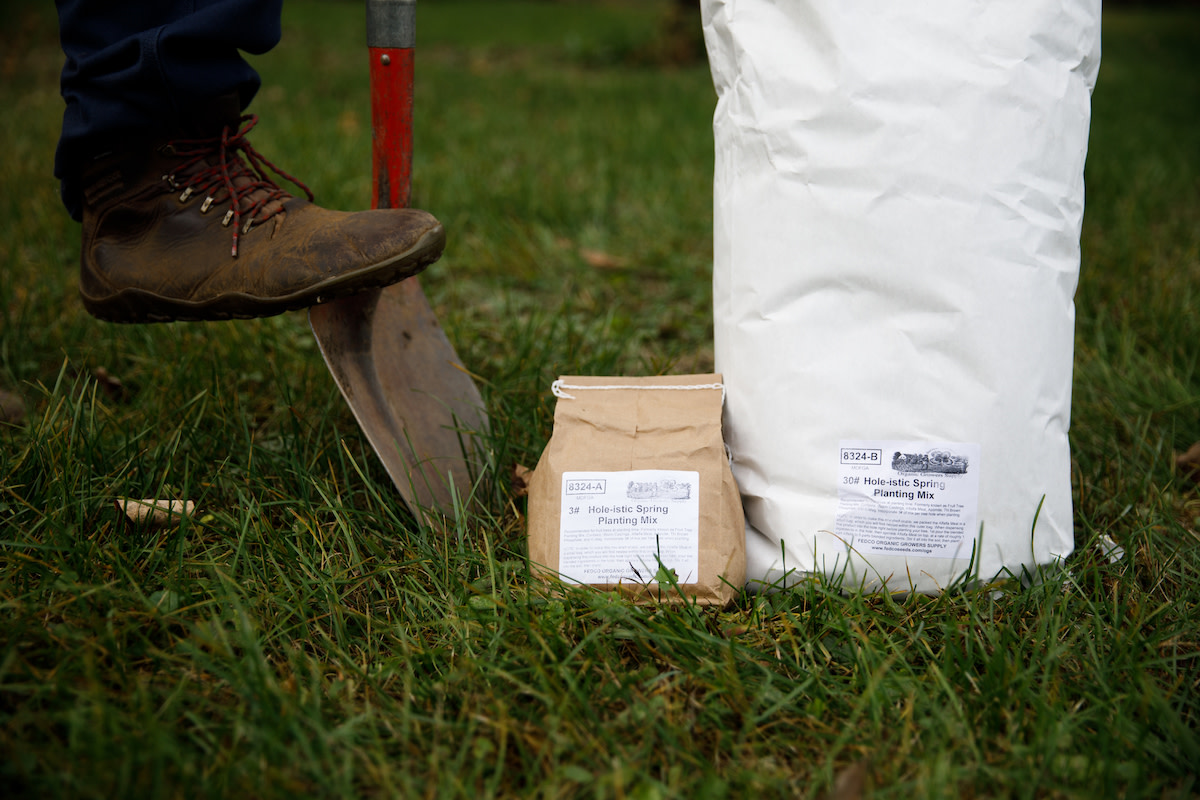 Recommended for fruit trees at planting time. Formerly known as Fruit Tree Planting Mix. Our own well-balanced blend of Tennessee brown phosphate, alfalfa meal, Azomite and K-Mag in a humus-rich base of worm castings. Add 3# per tree hole when planting. To keep this mix shelf-stable, we pack the alfalfa meal in a plastic bag within the main bag. When spreading this product, mix the alfalfa with the blended ingredients at approximately 1 part alfalfa to 6 parts blended ingredients. AYC