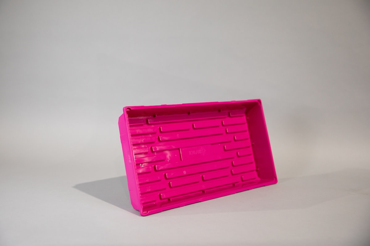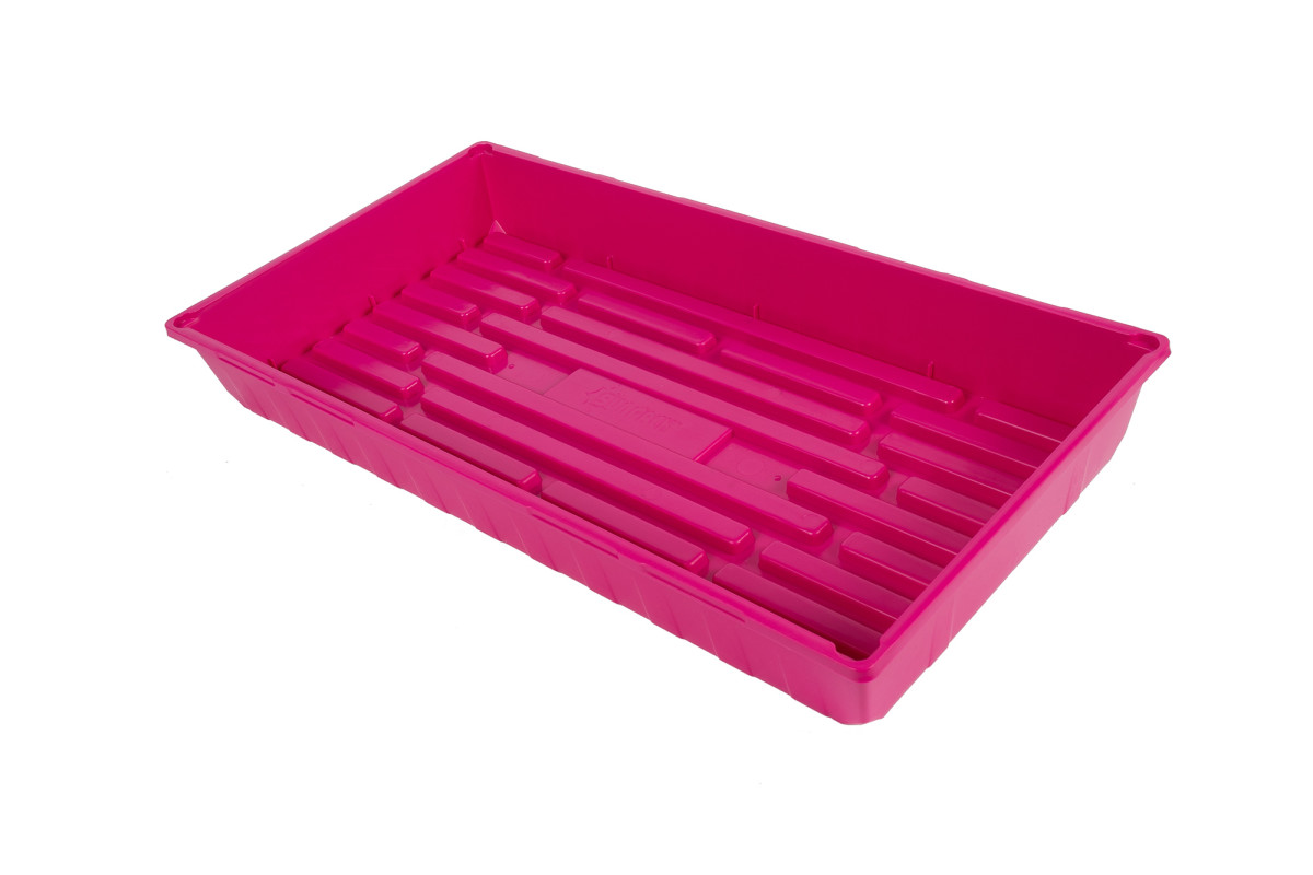 These super-solid injection-molded SUNPACK trays have no drainage holes, so they’re leak-proof and great for bottom-watering. Ribs along the bottom provide good airflow for whichever pots or cell trays you set in them. With the rib height subtracted, there is 2¼" usable depth. Outer dimensions: 11x21⅛". Comes in multiple colors.