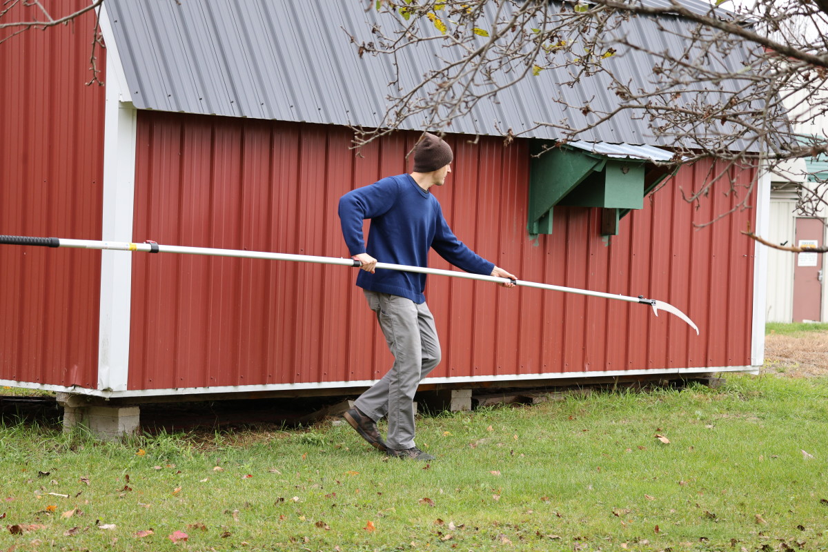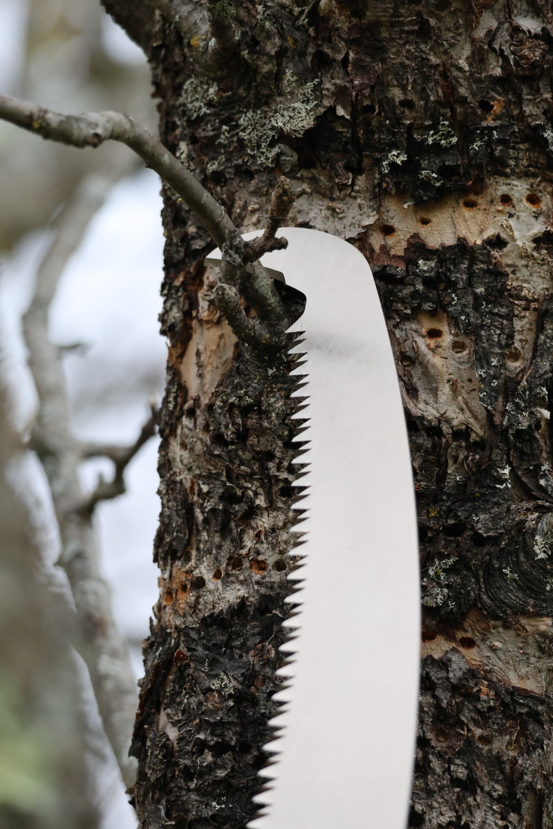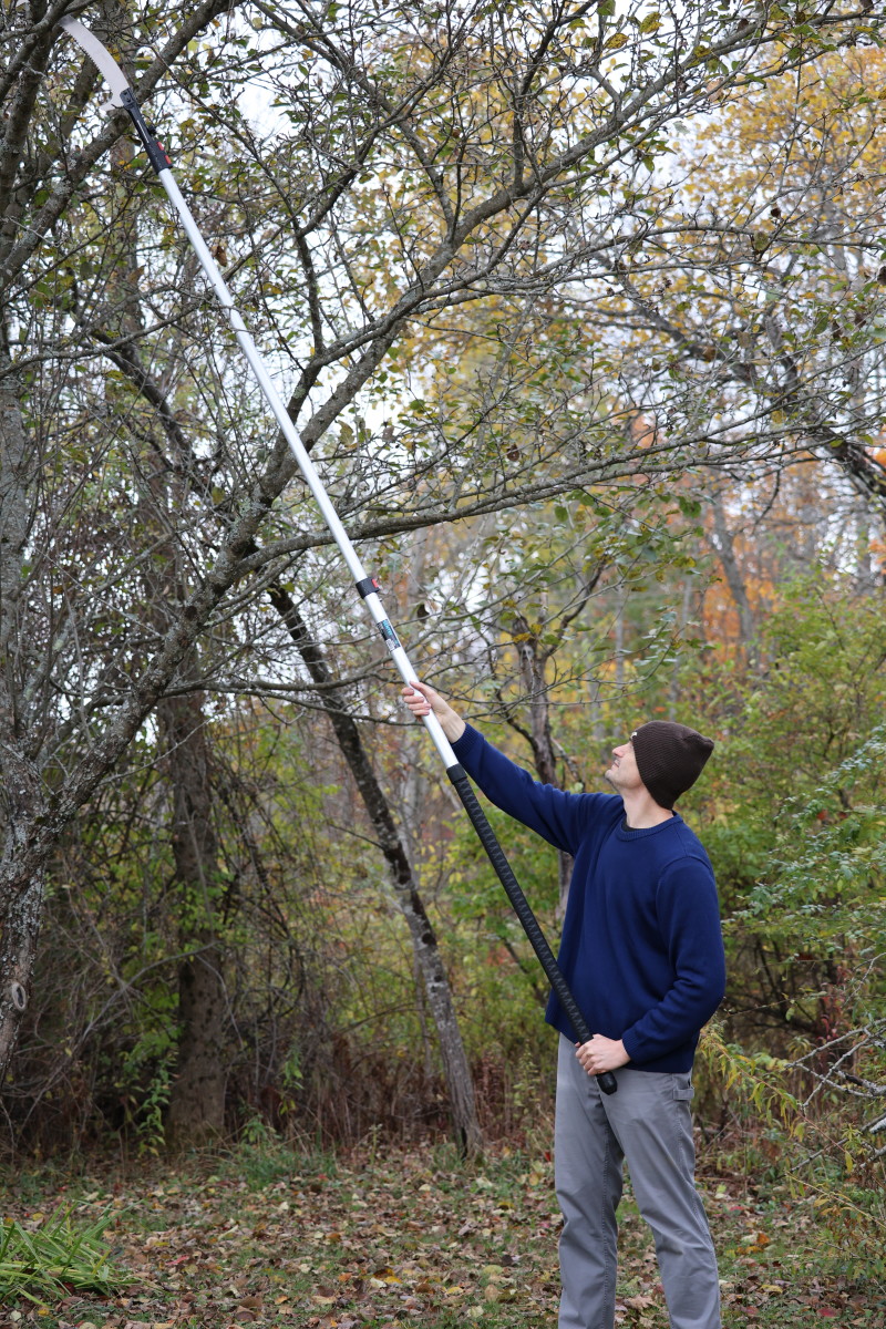 This is a one-for-one replacement for the Silky Hayauchi Pole Saw we carried for years. Features the same high-caliber blade as Hayauchi but bears a different name. Sentei means ‘selection’ in Japanese, but the word is also a nod to the Japanese tea-shrub-trimming machine that looks like a curved lawnmower. Indeed, the Sentei blade is curved for tree-trimming efficiency, and the lightweight aluminum pole makes it easy to maneuver and pinpoint your limbing selection. Abrasion-resistant extruded handle telescopes from 8' to an astounding 21', and the pole has both cam-collar locks and rib locks. Achieve top-notch cutting in record time from the safety of the ground, rather than using tree-climbing gear or a ladder—though please wear head and eye protection! The blade includes both a sharpened upper hook and a lower sickle for dispatching smaller stock; overall blade length: 15.4". 7.7 lb working weight. Blade scabbard included. Lifetime warranty against defects in manufacturing.