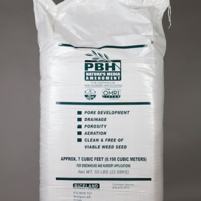 A great alternative to perlite in your growing medium—carbonaceous, renewable and less dusty to mix. Also used as a mulch for container plants. Parboiled to eliminate viable weed seeds.