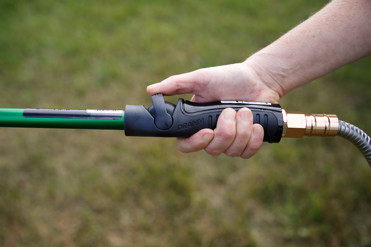 This wand offers the durability, versatility and ease of use you’ve always wanted for watering your plants. Fedco Seeds purchaser Robin Pickard-Richardson praises its plant-friendly water patterns, the clever ergonomic thumb-control valve for precisely dialing in the flow rate, and the 30" reach, which for her makes this wand “the best for hand watering I have used.” The head has 9 spray patterns: Stream, Shower, Rain, Center, Cone, Angle, Mist, Flat and Fan. At 40 PSI, the flow rate ranges from 1–4 gal per minute, depending on pattern. For seed-starting and watering delicate plants, you can swap out the 9-pattern head for the gentle Fogg-It Nozzle. Made with “Spacecraft Grade” aluminum alloy, brass, impact-resistant plastic and thermoplastic rubber on the grip. Green finish. Made in the USA.