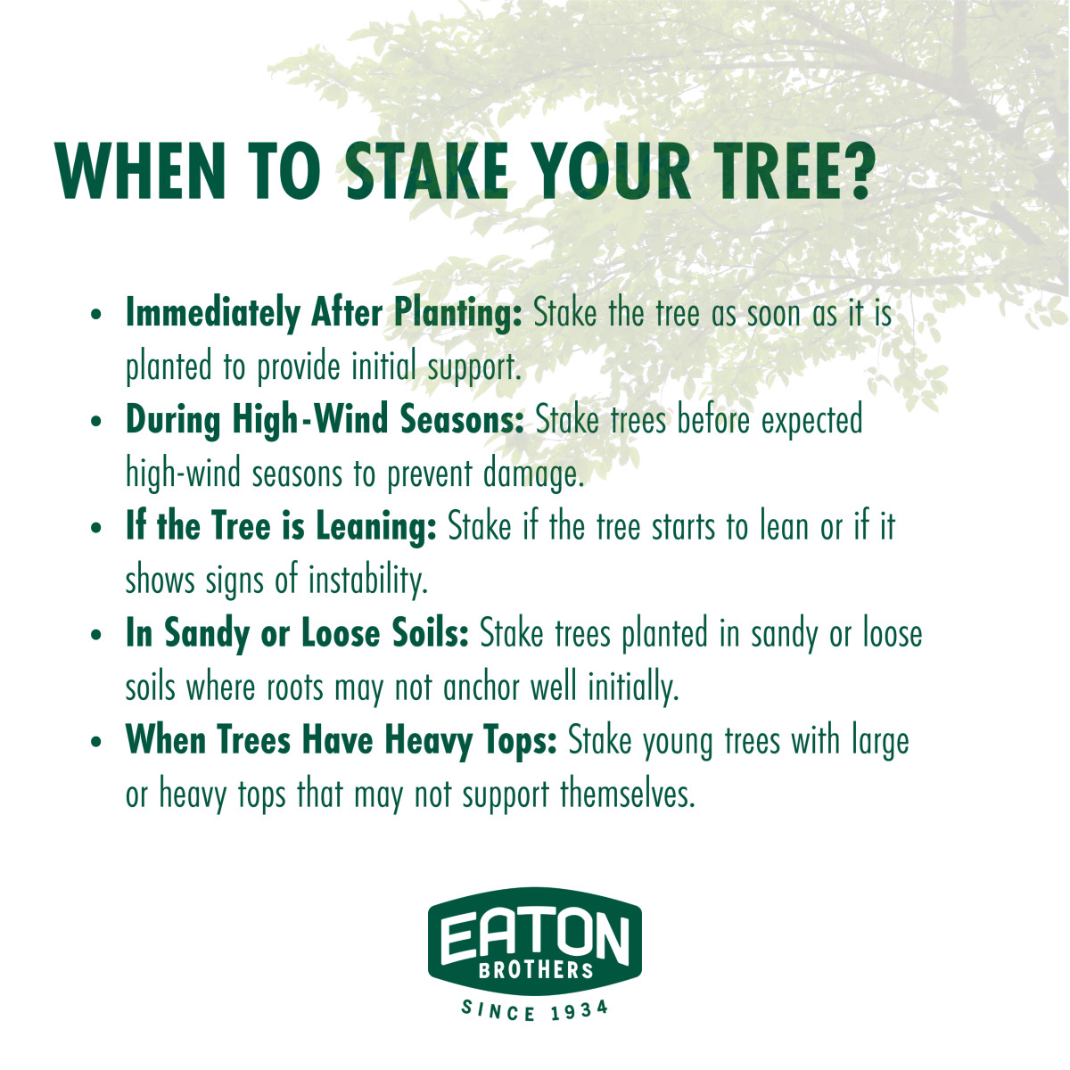 Stake your claim on a healthy root system! Staking is recommended for dwarf and semi-dwarf fruit trees; trees in windy sites; trees that develop a leaning habit; and trees planted in shallow or loose soil.