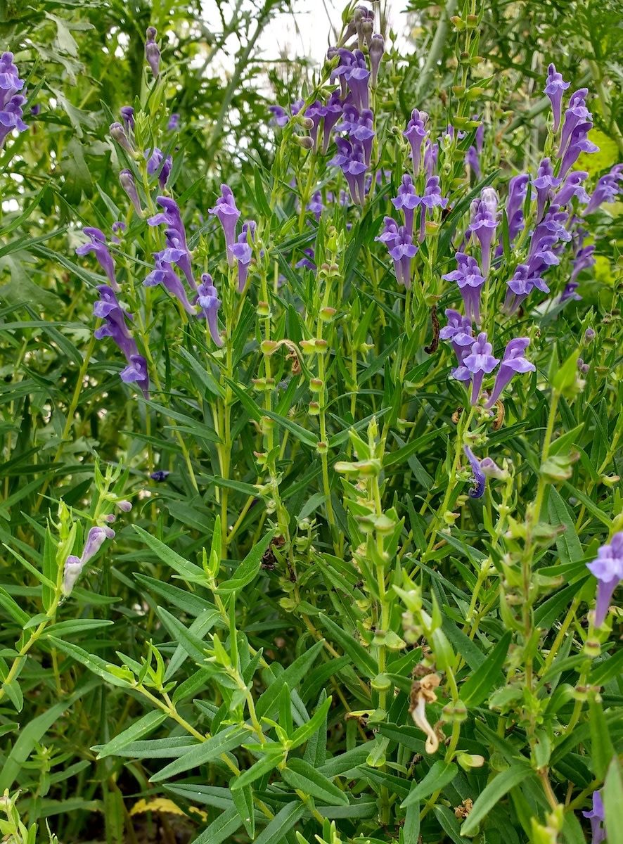 Perennial to Zone 4. Beautiful little perennial with myriad small violet monkshood-shaped blooms on a 1–2' subshrub. Looks like a shiny rosemary with slender ovate leaves. A definite candidate for the rock garden, it tolerates drought and grows best in light well-drained soil.Important as the Chinese herb huang qin, 3–4 year roots are dried and used as a bitter cooling sedative that lowers fever, blood pressure and cholesterol levels while stimulating the liver; also used to stop bleeding. To encourage the roots’ optimal medicinal powers, pinch buds and don’t let flowers bloom. About 250 seeds/g.