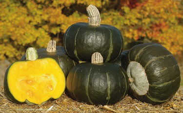 Bonbon’s advantages over the old Burgess strain are slight, but across the board they add up. First, consistency. Burgess can be variable, and in stressed seasons that may matter. Second, productivity. At 4–5 lb Bonbon is slightly the larger of the two, and at 4 fruits per plant, may yield more fruits as well. Third, appearance. Bonbon never fails to have the prominent grey button at its base that is the hallmark of the true buttercup. Fourth, flavor. Each at its best has superb flavor, but Bonbon is more likely to deliver it. Under highly fertile and favorable conditions, as when CR's rampant vines crawled through a manure pile during the very warm 2015 season, production can be astonishing.