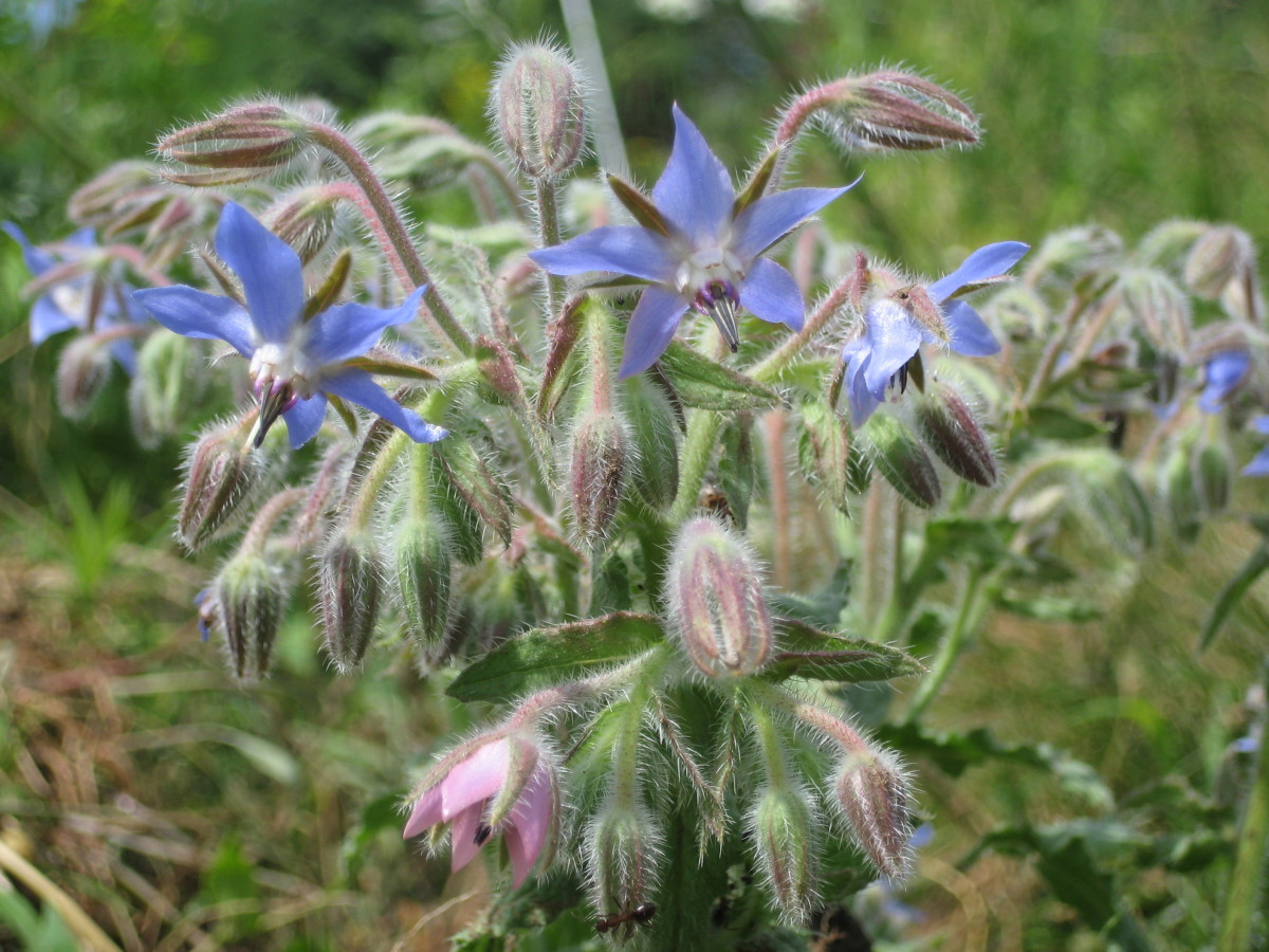 Annual. Gloria Seigars suggests it as a great border for the vegetable garden where the dense plants smother weeds and attract bees. Bears many small flowers that open blue, turn purple and then pink and make colorful additions to salads. Bushy 2–3' plant likes sun, prefers moist well-drained soil, will self sow. Young plants are easy to move around. Survives light frosts. About 50 seeds/g.