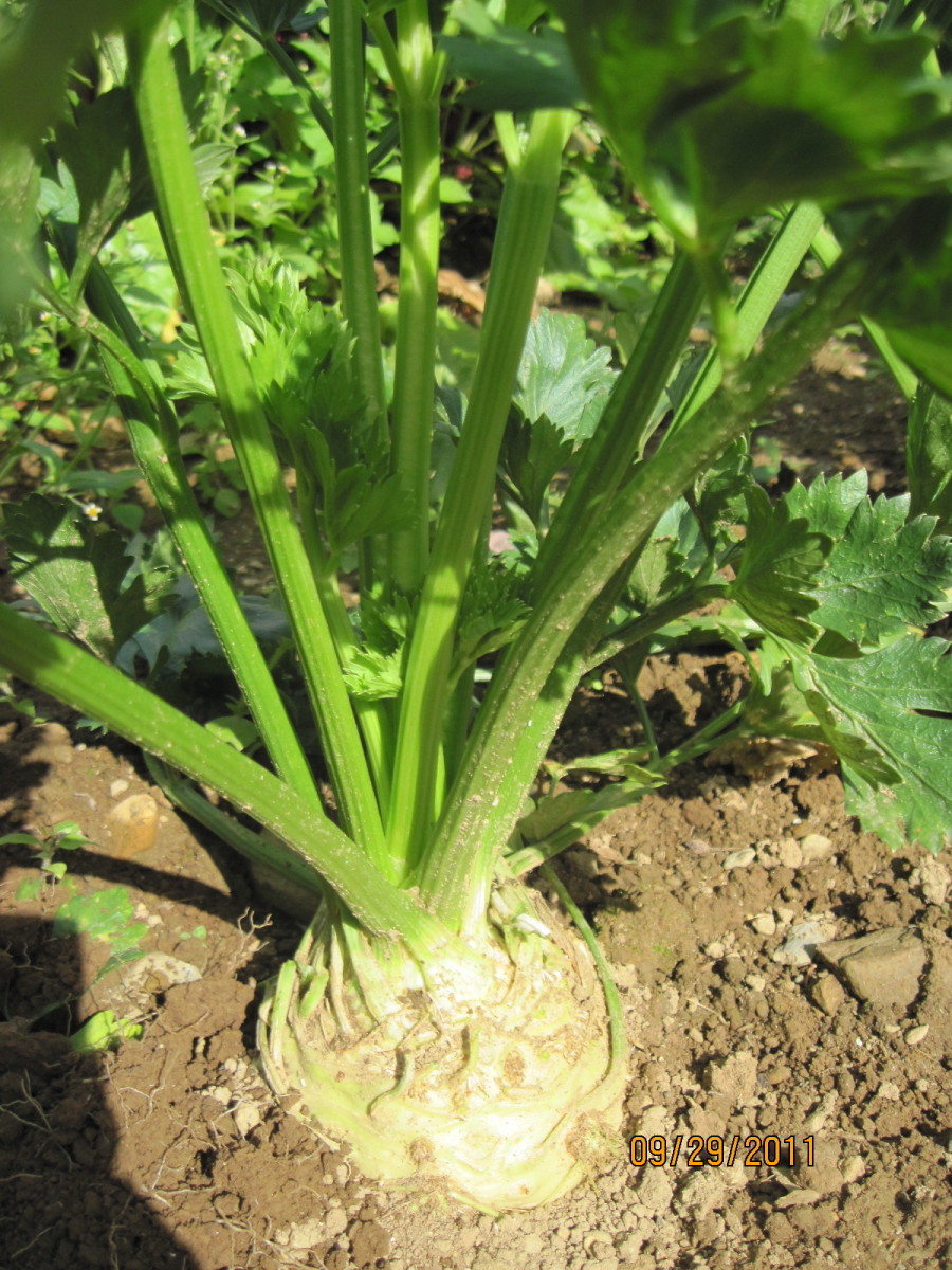 Culture: Must be started indoors in early spring, 10–12 weeks before transplant. Minimum germination temperature 40°, optimal range 70–75°, needs fluctuating temperatures. After germination, ambient air temperatures can be reduced but remain above 55° until transplanting. For one week prior to transplanting, go light on watering. Transplant outdoors when daytime temperatures are above 55° and the nights do not dip below 40°. Virginian Pam Dawling suggests that falling apple blossoms are a good phenological sign that transplanting time for these crops has arrived. Young seedlings grow slowly, requiring rich moist soil to survive. Regular rainfall or irrigation is necessary for good growth, flavor and yields. Celery withstands light fall frosts but is killed by serious cold.