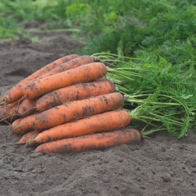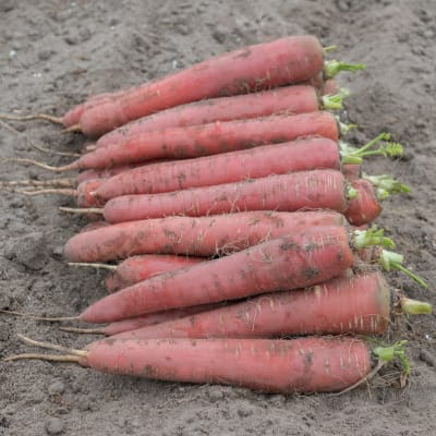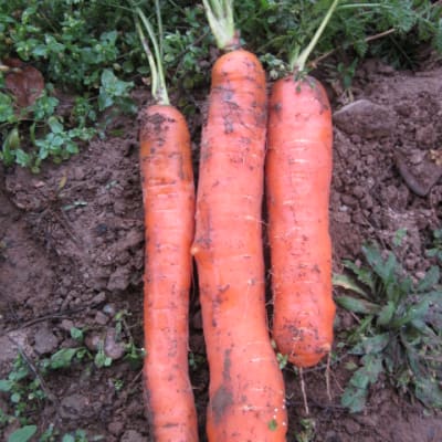 Daucus carota (70 days) F-1 hybrid. 6–7" slender carrot similar to Yaya, but with slightly later maturity and more upright tops. Good for storage.