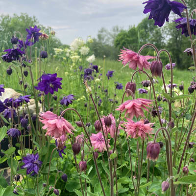 Cosmos bipinnatus (90-100 days) Open pollinated. Pink and white blooms. The 4' tall plants attract pollinators and have long stems for cutting.