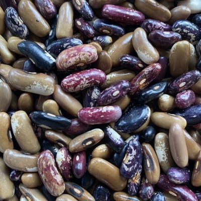 Phaseolus vulgaris (60 days) Open pollinated. Dubbed “weirdo beans,” by the student seed keepers at Troy Howard Middle School, these glorious mutts spin out a ragtag rainbow of patterns, habits and ancestral forms.
