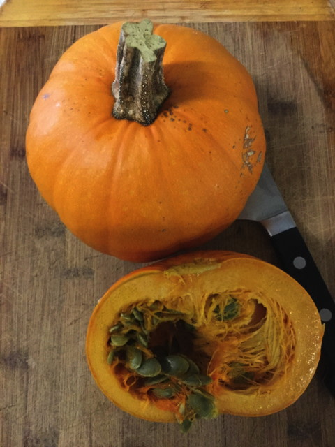 At first glance, it’s a cute squat 2–4 lb orange mini-pumpkin with a thick stubby handle. Perfect for the toddler u-pick market, you think. But, hello health conscious, what’s this? Upon carving a tiny jack-o-smile, you discover sweet and nutty hulless seeds for roasting! And, if you abandon your jack-o-lantern altogether, extra culinary congrats—you’ve got a perfect one-pie portion of filling as well! Did autumn just get really awesome? You betcha: Productive Petite Pepita Pie Pumpkin. Say that 10 times fast!