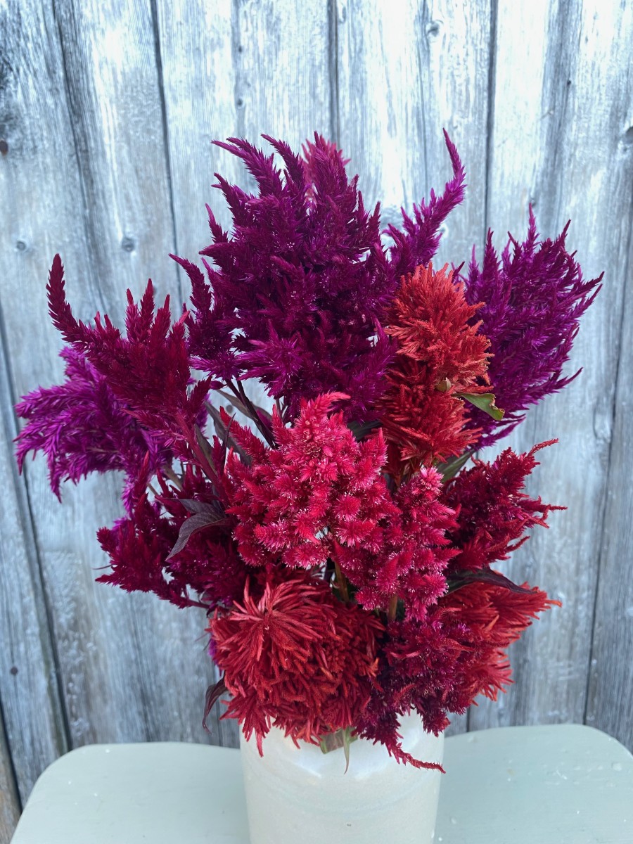 Annual. A prolific and striking display en masse, as a border, or in containers. Excellent cutflower for fresh and everlasting arrangements. Attractive to a wide array of pollinators as well as other “good” garden bugs. From the Greek keleos, ‘blazing,’ a reference to their brilliance. Commonly appear in three groups, cristata (crested, fancifully known as brains), plumosa (plumed) and spicata (with spikes or pointed). All share blazing colors, furry textures and unusual shapes. Known as ji quan hua in China where both seeds and flowers are used medicinally for blood diseases, bleeding and urinary tract infections.