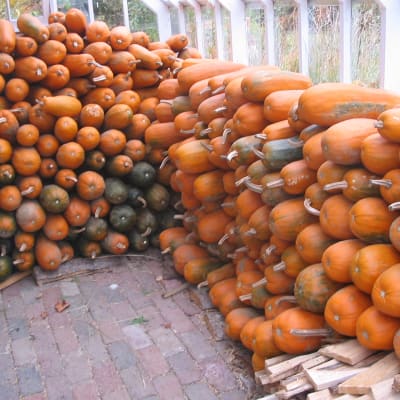 Saving Seed: Saving pumpkin seed is challenging! We list three species of the genus Cucurbita: C. pepo, C. maxima and C. moschata. Varieties of the same species will cross readily, but crossing will not occur between the different species. You must isolate varieties of the same species by half a mile if you want true-to-type seed. This is difficult for most gardeners—you may have to communicate and collaborate with neighboring gardeners, or exclude insects from blossoms and hand-pollinate. If you can pull off the variety isolation, processing the seeds is easy: rinse seeds from the guts of fully ripe and cured pumpkin. Dry and store.