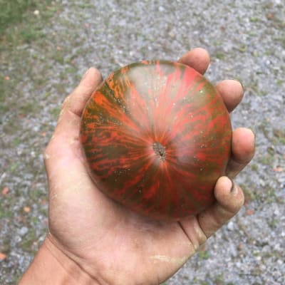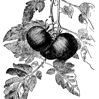 Solanum lycopersicum (75 days) Open pollinated. Gorgeous two-bite dusky black cherry. Juicy, delicious, complex flavor of black tomatoes. Resists disease; cracks in wet weather.