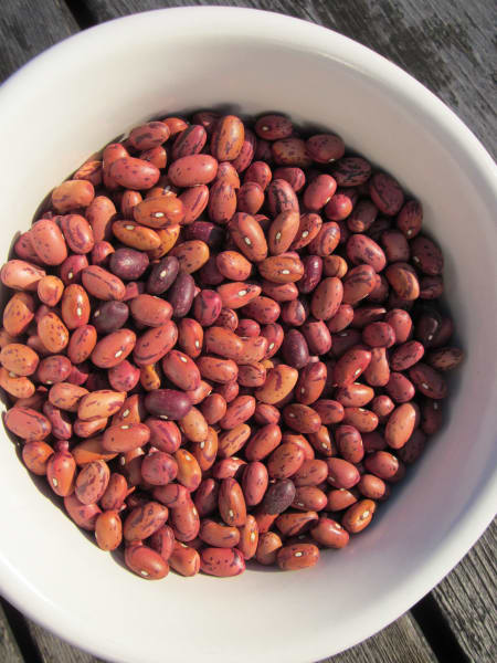 Though each is a New England tradition since before 1800, this bush bean is not to be confused with True Red Cranberry pole bean or the pink-flecked Italian Borlotti bean. Early horticultural compendiums list two New World varieties, Dwarf Cranberry and Pole Cranberry, being grown by native peoples in New England. Vermont Cranberry is the Dwarf Cranberry’s descendant, probably outfitted with a place name by an enterprising seedsman. A New England tradition since before 1800. Vermont Cranberry’s pods contain 5 to 6 speckled cranberry-colored shell beans. Reliable, hardy, easy to shell. Sometimes gets viney.