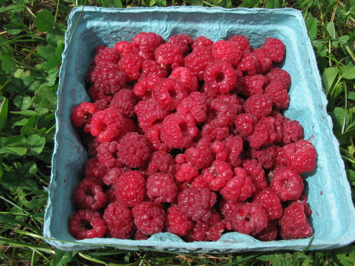 Round-conic medium-sized berries with an intense deep dark almost purple color. Strong aromatic tart raspberry flavor and a perfect medium-soft texture. Grower John Meader speaks glowingly of Boyne, calling it “an excellent, excellent variety. Boyne is the one to beat if you’re going to introduce a new raspberry.” Leaves tend to curl down over the fruit making it harder to pick if you’re in a hurry. According to friends who make honey and fruit butters, there is no better raspberry for processing.