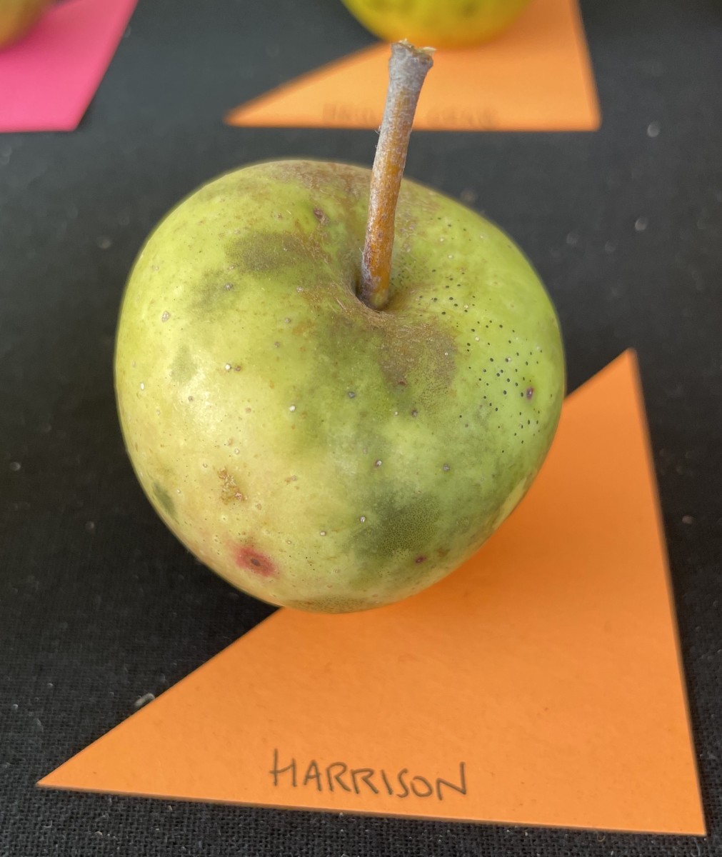 One of the most renowned American cider apples, dating from the early days of domestic cidermaking. Harrison cider was famous and considered to be better than champagne. Medium-small oval yellow-skinned fruit. Rich firm dry yellow flesh. According to William Coxe in 1817, it makes a “high coloured, rich, and sweet cider of great strength, commanding a high price in New-York, frequently ten dollars and upwards per barrell.”