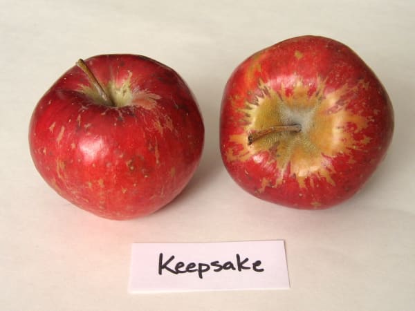 Irregular conic medium-sized fruit is almost entirely overlaid with stripes and a wash of very deep red. Same parentage as Sweet Sixteen. Resembles Frostbite and Sweet Sixteen in appearance and taste, although the flavor is not quite as intense. Fruit size can be somewhat small.