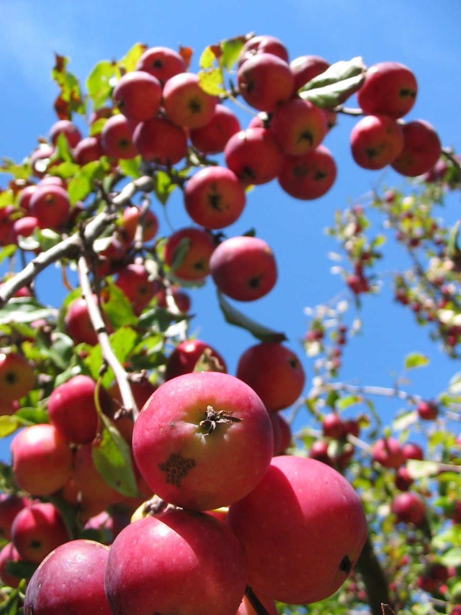 Introduced by the famous Canadian plant breeder WL Kerr. Firm deep red ovate 2" fruits are a tasty snack fresh off the tree, and even better after storage. They keep well. Be sure to thin fruitlets so the remaining apples size up. We love culinary crabs, and this one is especially good for brandying. Pack fruit into a mason jar with a scoop of sugar and cover with your favorite vodka. Let stand a year or two; flip it upside-down now and then.