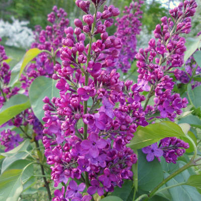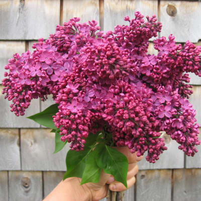 Syringa vulgaris Deep bluish-purple lilac with the biggest florets around: each single flower can reach up to 1½" wide! “So large they hang like clusters of immense grapes.” Z3.