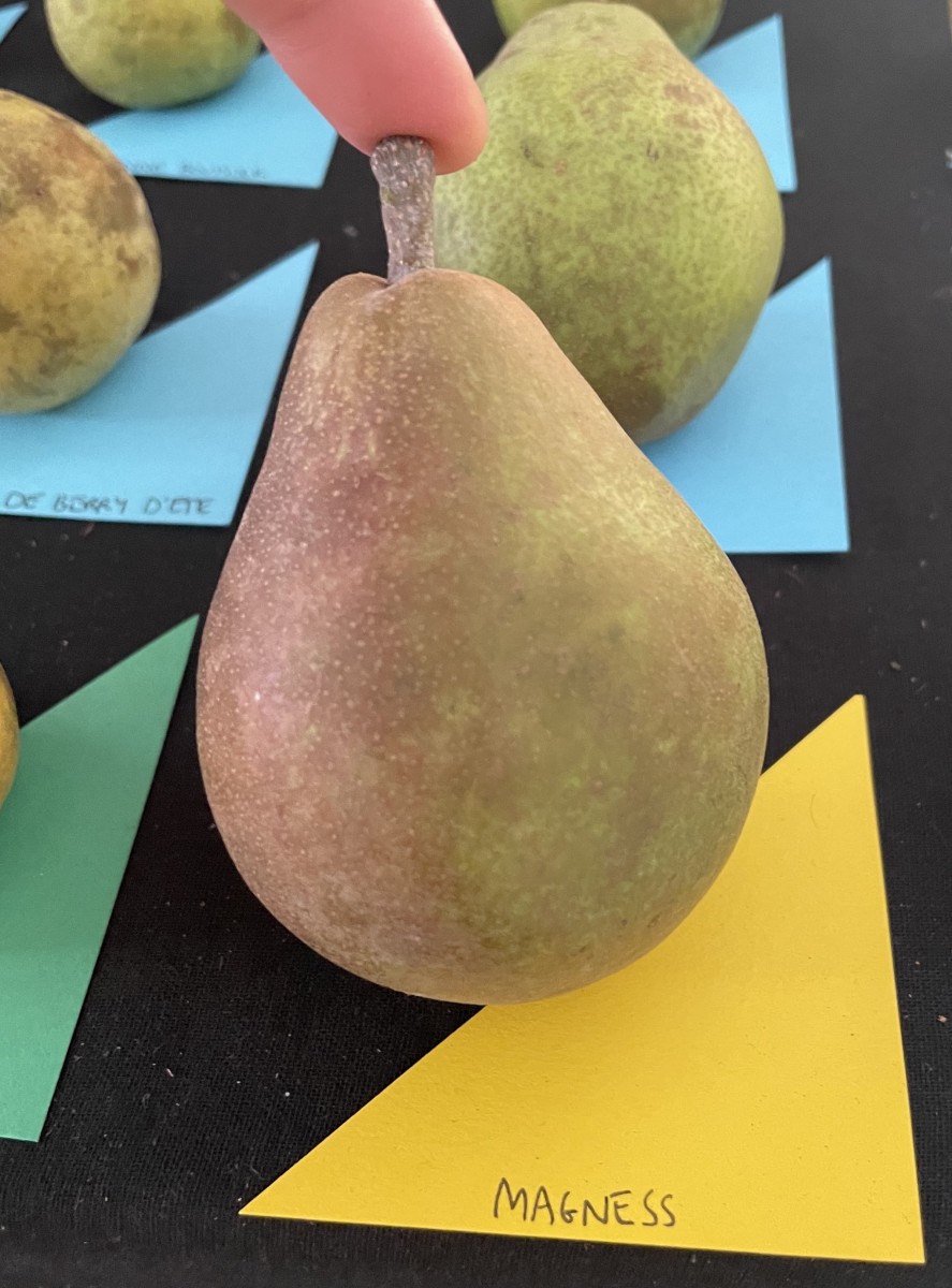 Rich, melting, buttery, juicy, sugary, tender, highly perfumed and aromatic with almost no grit cells. Have a napkin on hand when you bite in because the juice will run down your chin. Renowned plant breeder Elwyn Meader rated Magness as the standard by which to judge other pears in taste and quality. Some call it the best-flavored pear ever.