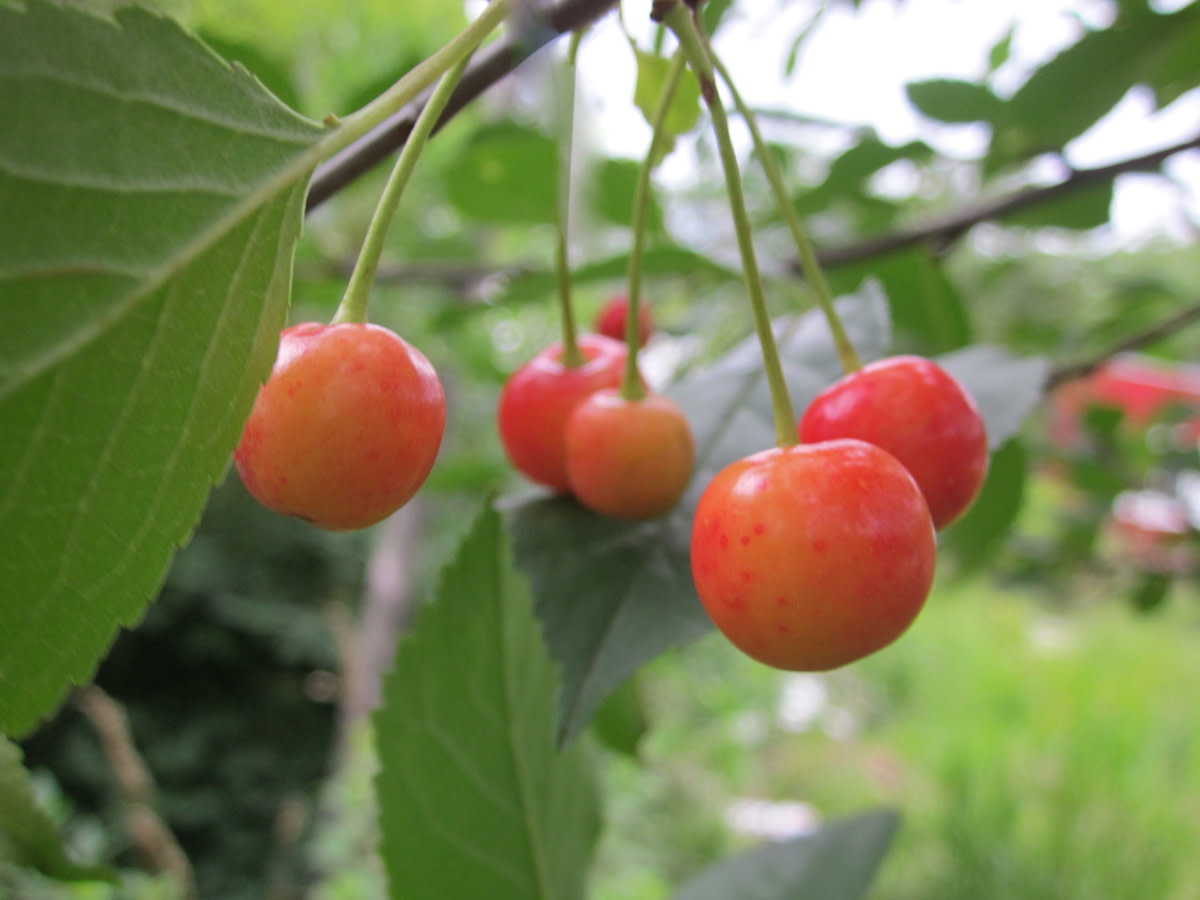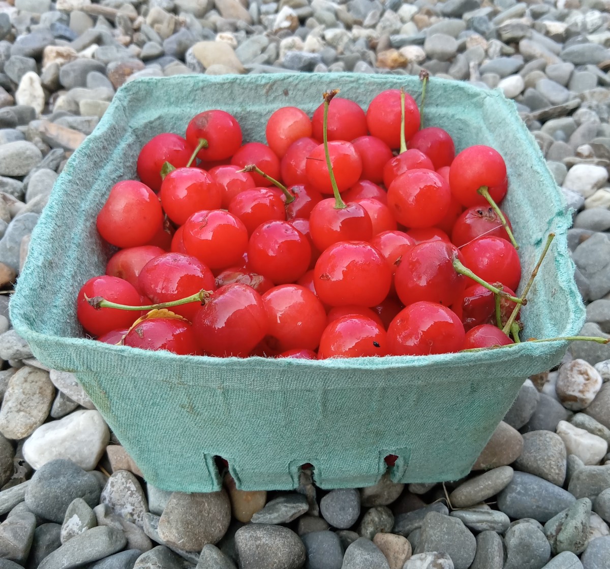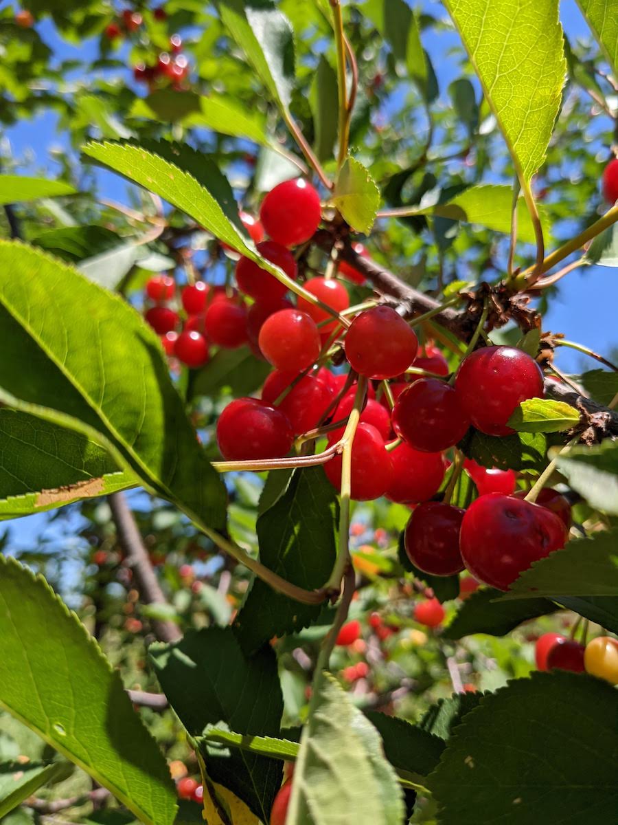 The most famous of all pie cherries. Long considered the standard of excellence in the U.S. Aromatic firm-fleshed bright red fruit makes a clear light pink juice and is a favorite for processing. Tart but still enjoyable fresh off the tree when fully ripe. Birds love them, too. Surprisingly hardy, showing no signs of dieback in central Maine after the arctic blast of February 2023. In Aroostook County trees fare better than Meteor. Appears to be resistant to brown rot.