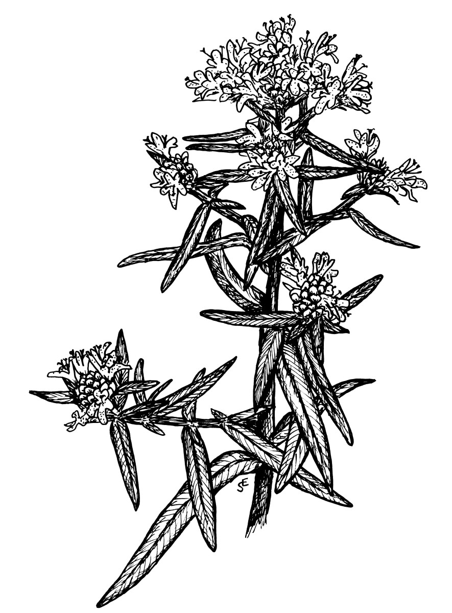 Feed your local pollinators with this densely flowered native. White to light lavender flowers with tiny purple spots bloom July to August. Wispy upright branching foliage smells intensely minty when crushed. A strong infusion of the aerial parts makes a tasty minty tea, traditionally used to settle indigestion. Avoid during pregnancy.