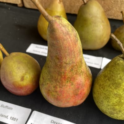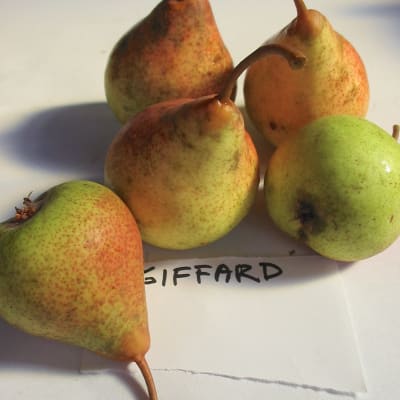 Pyrus communis Late summer. Maybe the best-tasting pear ever. Rich, melting, buttery, juicy, sugary, tender, highly perfumed and aromatic with almost no grit cells. Excellent fire blight resistance. Z4.