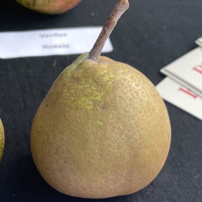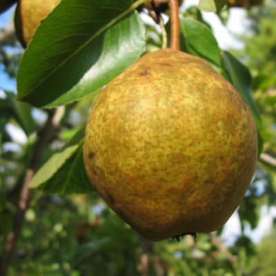 Pyrus communis Late summer. Small obovate yellowish-brown russeted pear with slight red blush. Often considered the best-flavored of all pears. Good fresh and cooked. Z4.