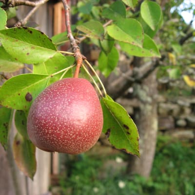 Pyrus communis Late fall. Bittersharp traditional English perry pear. Medium acidity, high tannin, everything you want for blending into perfect perry. Z4.