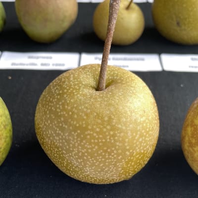 Pyrus pyrifolia Late summer. Medium-sized Asian pear, with little to no russeting. White crisp flesh. Keeps about three months. Precocious and productive tree. Disease resistant. Z4/5.