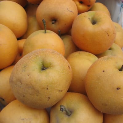 There are thousands of named Asian pear cultivars in China, where they have been grown for more than 2000 years. They bear young and are long-lived. Asian pears differ from European pears: they are crisper and very juicy, sweet and mild with a nutty background, and are roundish in shape. Because they set heavily, thin the crop once or even twice during the first two months after bloom to ensure large fruit. Leave about one fruit per spur. Unlike European pears, they should be tree-ripened. When the seeds are black, the pears are ready. They ripen in late summer and keep for several weeks with refrigeration.