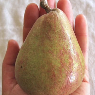 Pyrus communis Winter. Intensely sweet highly aromatic tender storage pear; possibly the best eating of all winter pears. Similar to Seckel. Keeps extremely well. Z4.