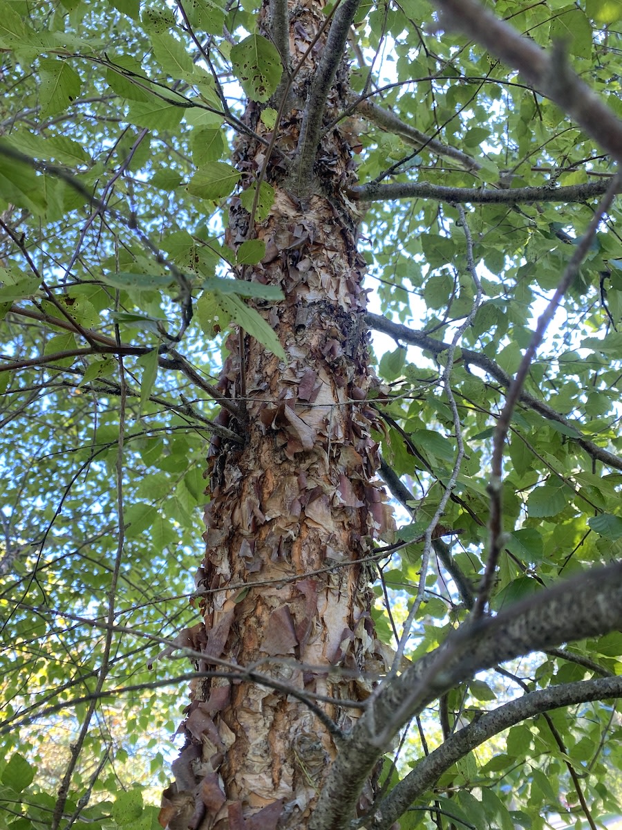 With its graceful silhouette and attractive bark, river birch is a highly prized ornamental. Grows to be a very large rounded tree. Found along stream banks and riparian areas where conditions are wet in winter and spring, dry in summer and fall. The beautiful reddish-brown exfoliating bark reveals the equally ornamental multi-shaded inner bark. Dark green summer foliage yellows before dropping. Leaves, twigs and bark traditionally used to treat various stomach ailments. Birds eat the seeds and deer browse the foliage. Wood not as valuable as other birch.