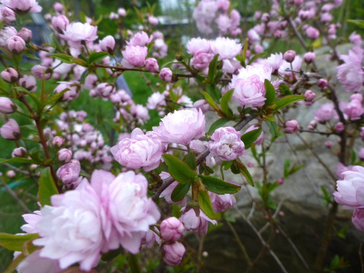 5-6' × 3-4' Abundant pink double flowers in late April when little else is blooming. We’ve fallen head over heels for this arresting little shrub, an old standard in the trade. Branches are nearly covered with the ½" blooms ranging all shades of pink and loaded with petals that look like layers of petticoats. Pointy lanceolate leaves are light green and contrast beautifully against the maroon stems of first-year wood, extending its interest into summer after the curtain closes on act one. Prune after flowering to shape and for better blooms the following year, or do nothing. Rich loamy soil, full sun to partial shade. May sucker and naturalize, but the one in our garden is keeping to itself. Native to China and Japan. Z4. (1-3' bare-root plants)