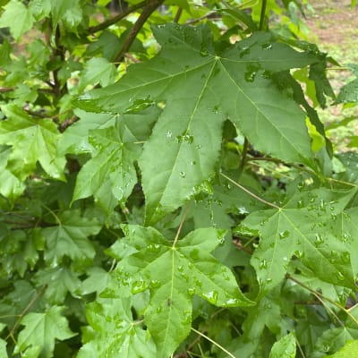 Acer saccharum 50-100'. Largest of our native maples. Colorful fall foliage. Valued for shade, syrup and lumber. Boil sap to make real maple syrup. Z3.