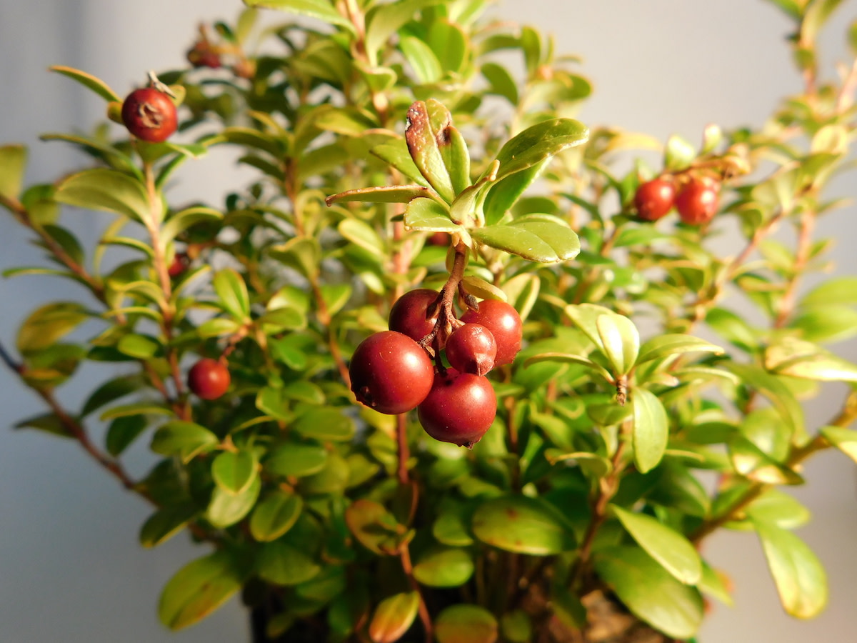 Also called Foxberry, Cowberry, Mountain Cranberry. Vigorous shallow-rooted spreading groundcover is related to blueberries and cranberries. Bright red glossy nutritious fruits are wicked tart until dead ripe, then have excellent flavor, richer and less astringent than cranberries. Can be eaten fresh but primarily used in sauces, jams, syrups, fruit leathers, juices and wines. Stores up to 2 months in the fridge. Small shiny dark green foliage is quite lovely. Adorable tiny bell-shaped white flowers in spring attract a plethora of pollinators. Extremely popular in Scandinavia and now catching on in the U.S. Ripen in late summer but are best after a frost. Can produce 1–2 lb per plant for up to 20 years.