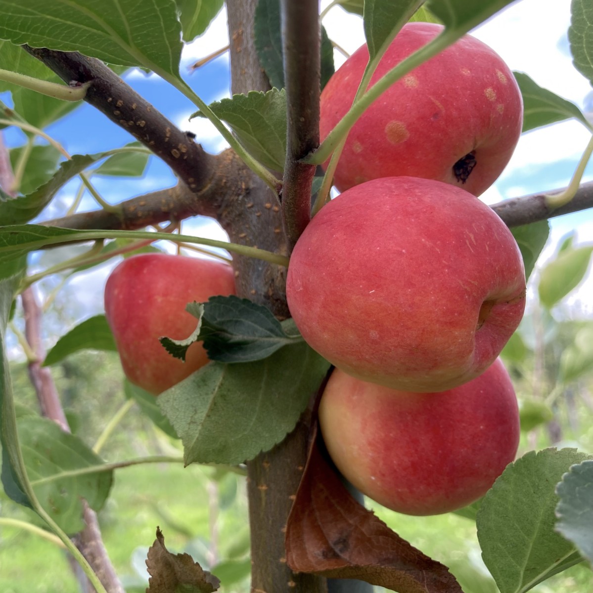 One of the most famous of all American crabapples and certainly the one with the coolest name. White single flowers bloom with midseason apples. Red-blushed roundish 1½-2" fruit ripens in late summer. Tart, juicy and astringent, used traditionally for all culinary purposes and now becoming popular with cidermakers.