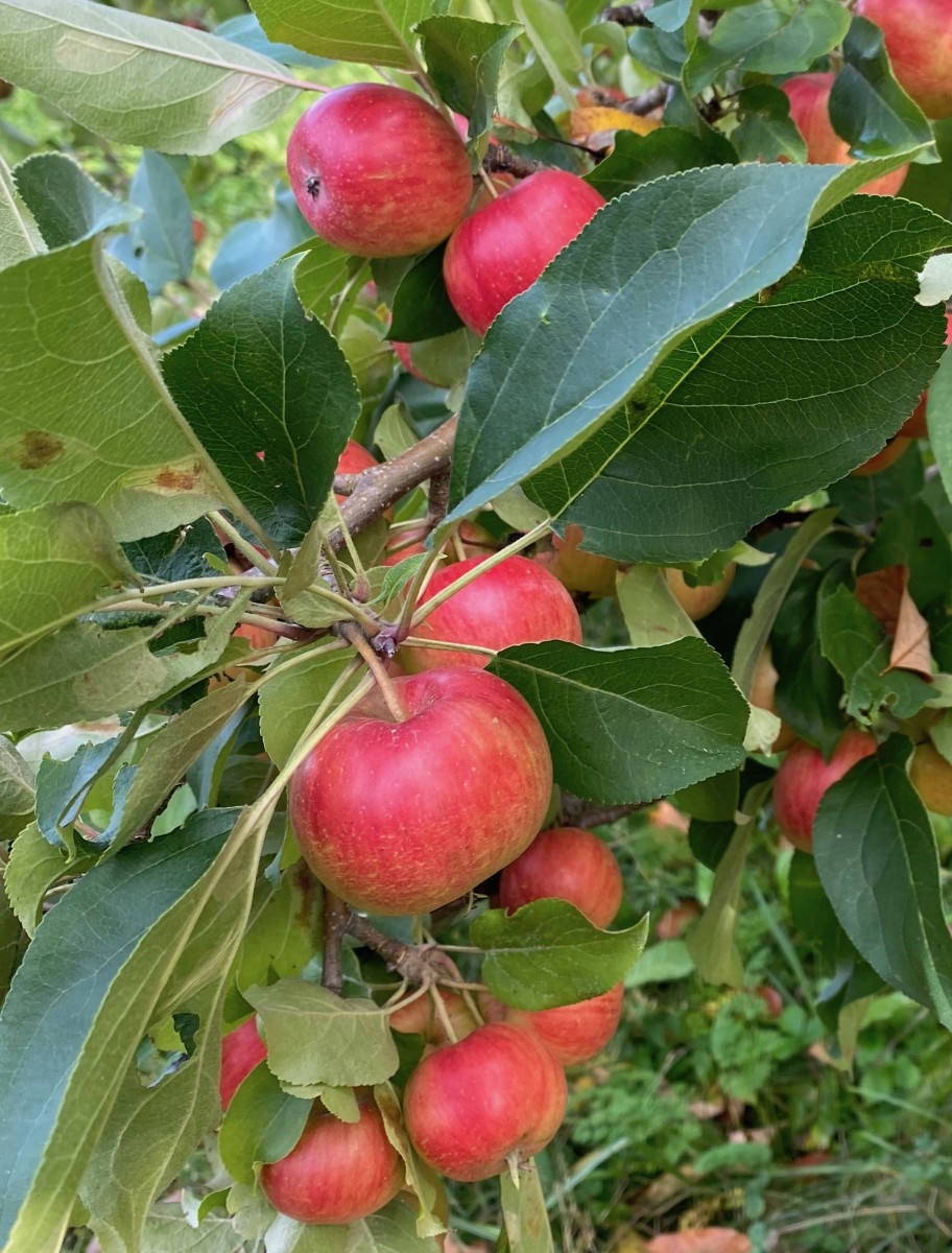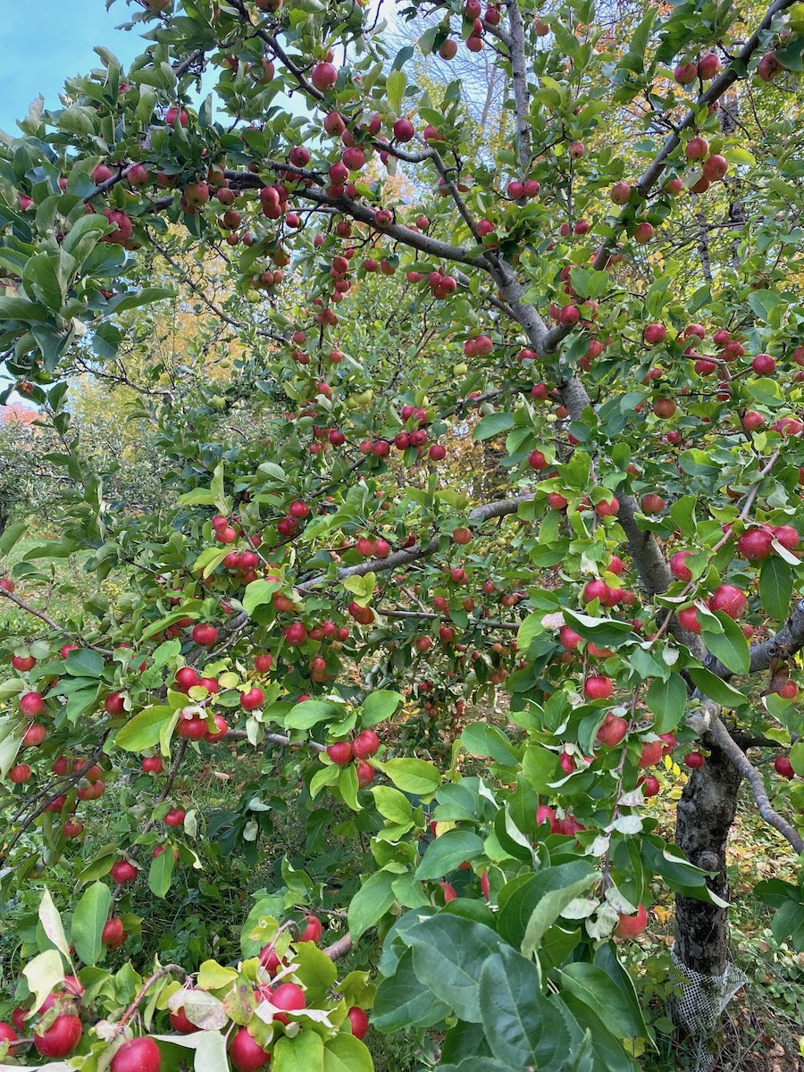 One of the most intensely flavorful apples we list. Small roundish bright red fruit is crisp, juicy, tart, tangy and spicy. Highly recommended for dessert. Extremely high in both sugar and acid. Sugar level of the juice is around 25%. Becoming one of the most sought-after American cider apples. Makes perfect single-variety cider—the best there is! In September the tree looks like a mass of cherries. Bred and introduced by the generally unknown Albert Etter, one of America’s most innovative and important fruit breeders of the 20th century.
