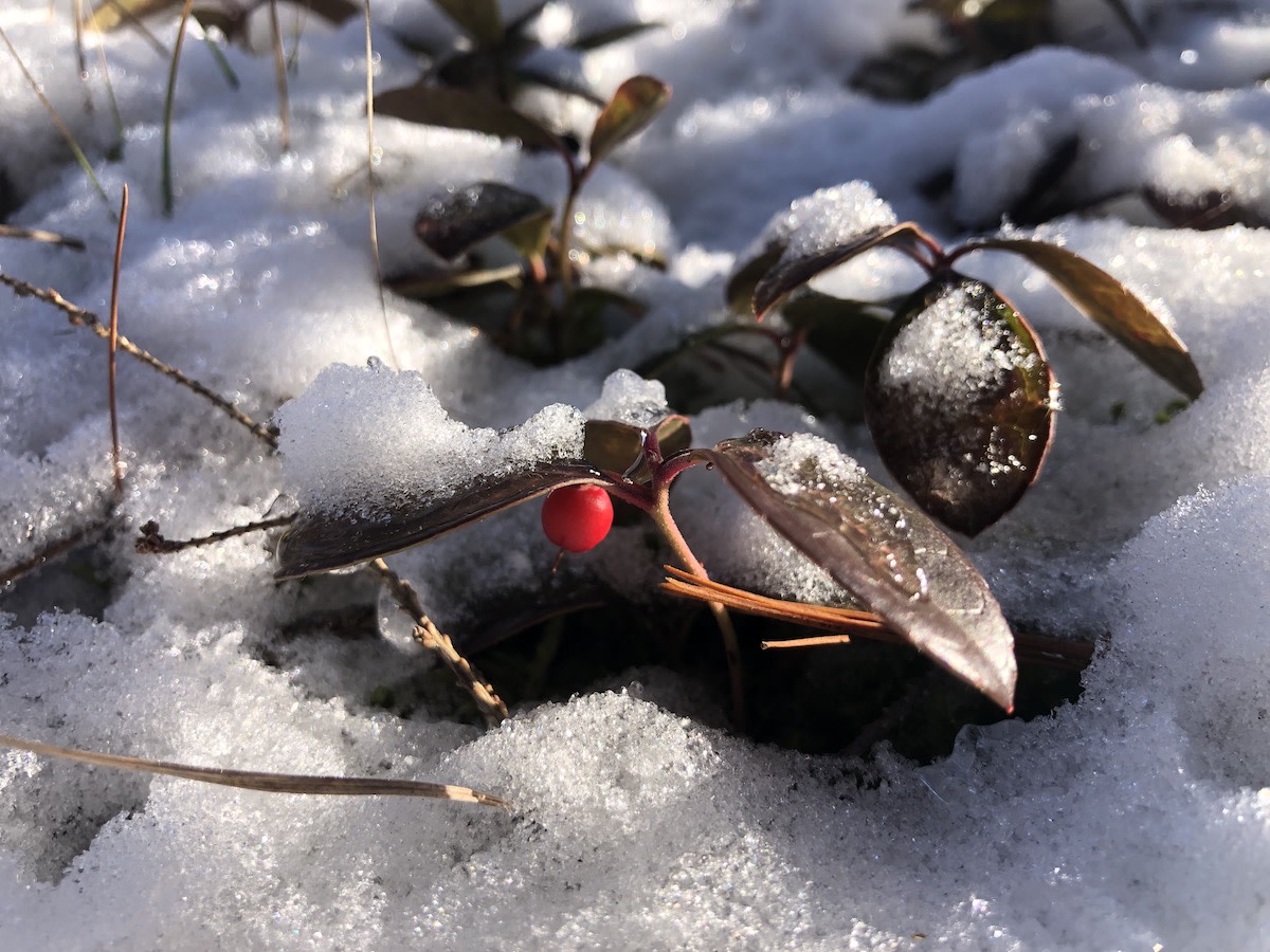 6–10" tall with a 1–3' spread. Also called Eastern Teaberry. This herbaceous aromatic rhizomatous evergreen groundcover is native to the woodlands of eastern North America.